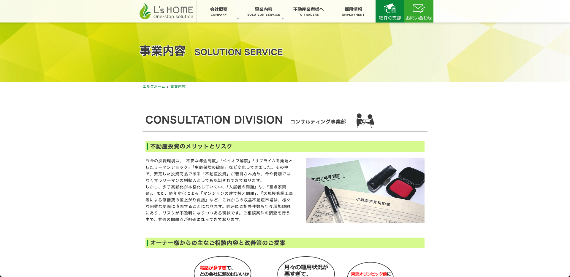 ブランドイメージを意識し、不動産会社としての信頼感を視覚的に表現しました。 ファーストビューは動画や画像ではなく「読みやすさ」を重視したタイポグラフィで構成し、離脱を防ぎつつ信頼感を強調しています。 トーンの一貫性と余白のバランスにこだわり、ユーザー層であるやマンション購入者やお取引き企業様が情報をスムーズに得られるよう、 シンプルかつ導線の明確なUI設計を行っています。