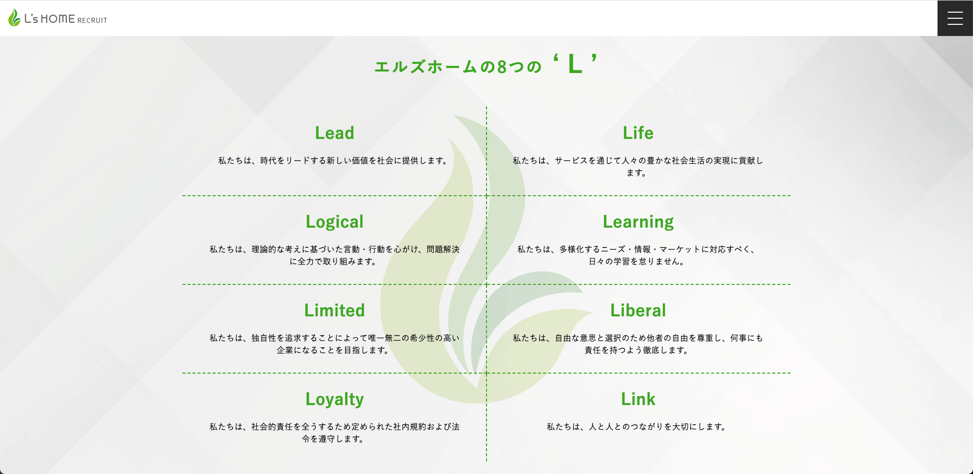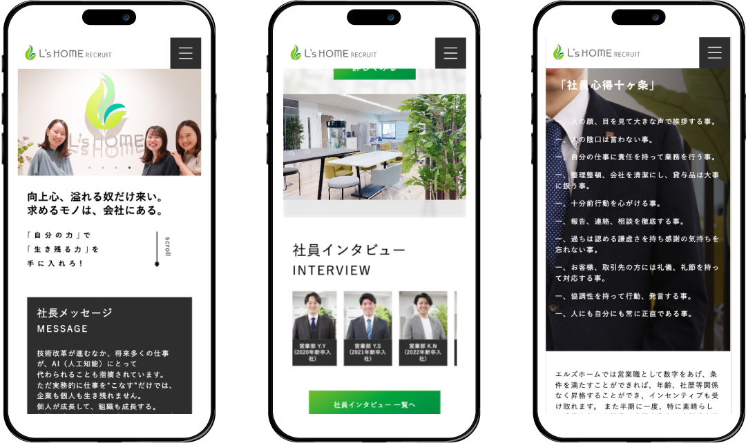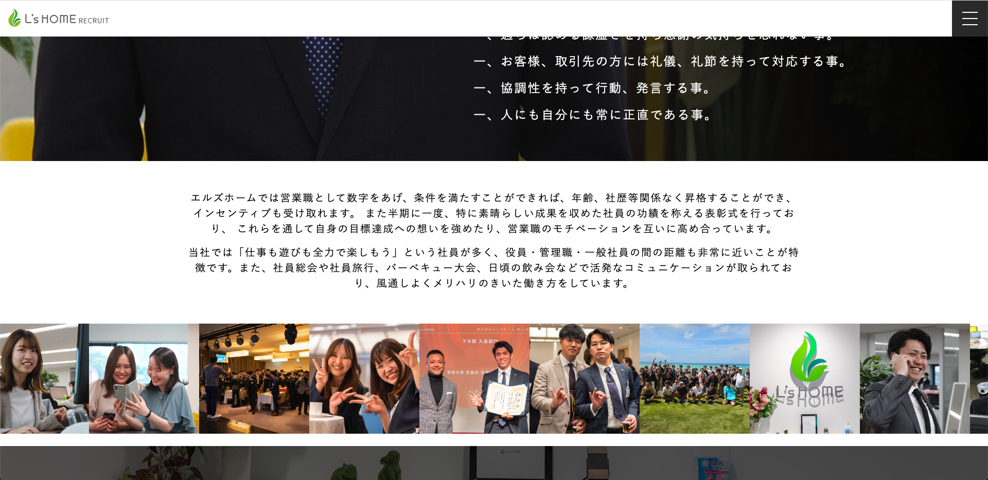 不動産会社のリクルートサイトですが、あまり暑苦しい印象を与えず、 求職者様の不安を減らす情報設計と導線設計で情報処理にストレスのかからないよう、 サイトのトーンや雰囲気にも注意しました。サイトの目的は老若男女問わず幅広いユーザーに応募してもらうことでしたので、 実際にサイト公開からのリード獲得が達成できており、大手人材紹介サイトに負けない強みを出せたと感じております。